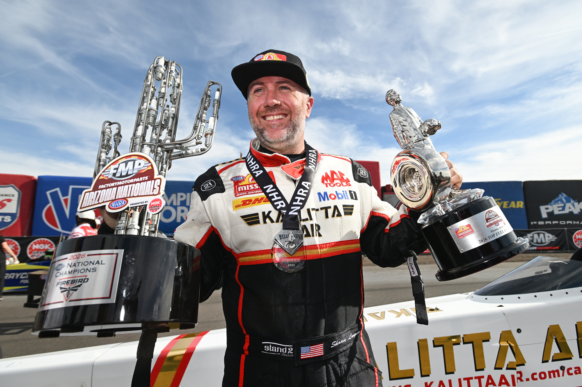 Top Fuel’s Shawn Langdon stayed red-hot at Firebird Motorsports Park, winning for the third straight year in Phoenix and knocking off Leah Pruett in the final round with a run of 3.877 at 325.45 in his 12,000-horsepower Kalitta Air dragster. He’s now undefeated in his last 12 rounds at the fan-favorite facility and has found success in a variety of conditions over the years.