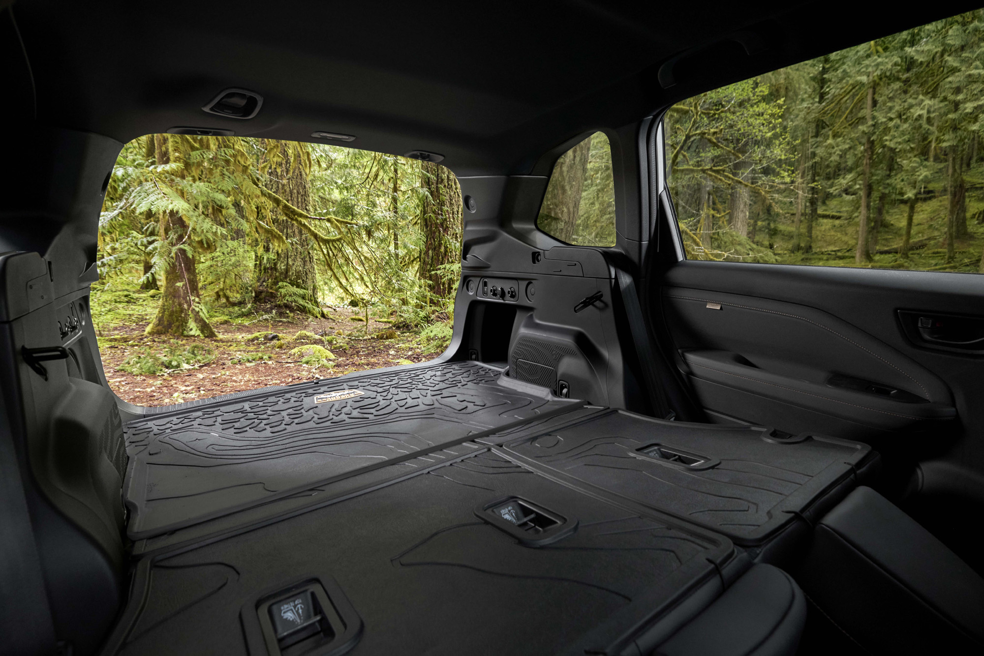 Inside, Subaru has made thoughtful tweaks that make you wonder why they weren’t included sooner. The center console has been redesigned with a smartphone slot ahead of the now-larger cupholders, a center armrest that actually feels like an armrest, and a console storage box underneath that could hide a small camping arsenal if needed. The redesigned shifter sits closer to the driver, improving ergonomics in a way that subtly elevates the experience. Rear passengers are not forgotten. The cupholders are now large enough to swallow a 32-ounce Nalgene bottle—a small but important detail for outdoorsy types who treat hydration as a survival tactic. Seatbelt mounting points have been adjusted for comfort and safety, which might not sound exciting, but it’s the sort of attention to detail that separates “generic SUV” from “SUV you actually want to live with.”