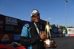 Three-time Top Fuel world champion Antron Brown moved into the points lead for the first time since 2017, winning his second straight playoff race at the NHRA Carolina Nationals. Austin Prock (Funny Car), Dallas Glenn (Pro Stock) and Matt Smith (Pro Stock Motorcycle) also won the 16th of 20 races.