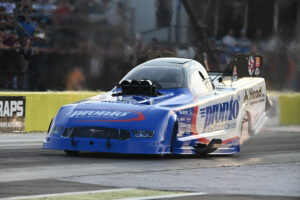 Funny Car points leader Austin Prock broke John Force’s record for most No. 1 qualifiers in a single season on Saturday at The Strip at Las Vegas Motor Speedway, powering to his 14th top spot of the season at the Ford Performance NHRA Nationals. Brittany Force (Top Fuel), Greg Anderson (Pro Stock) and Gaige Herrera (Pro Stock Motorcycle) also qualified No. 1 at the 19th of 20 races.