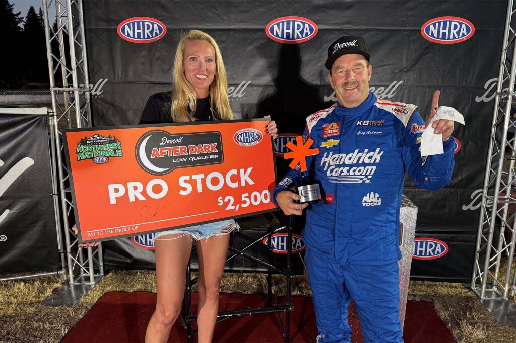 Top Fuel’s Doug Kalitta took the provisional No. 1 spot in Top Fuel under the lights at the Muckleshoot Casino Resort NHRA Northwest Nationals. J.R. Todd (Funny Car), Greg Anderson (Pro Stock), and Matt Smith (Pro Stock Motorcycle) are also the provisional No. 1 qualifiers.
